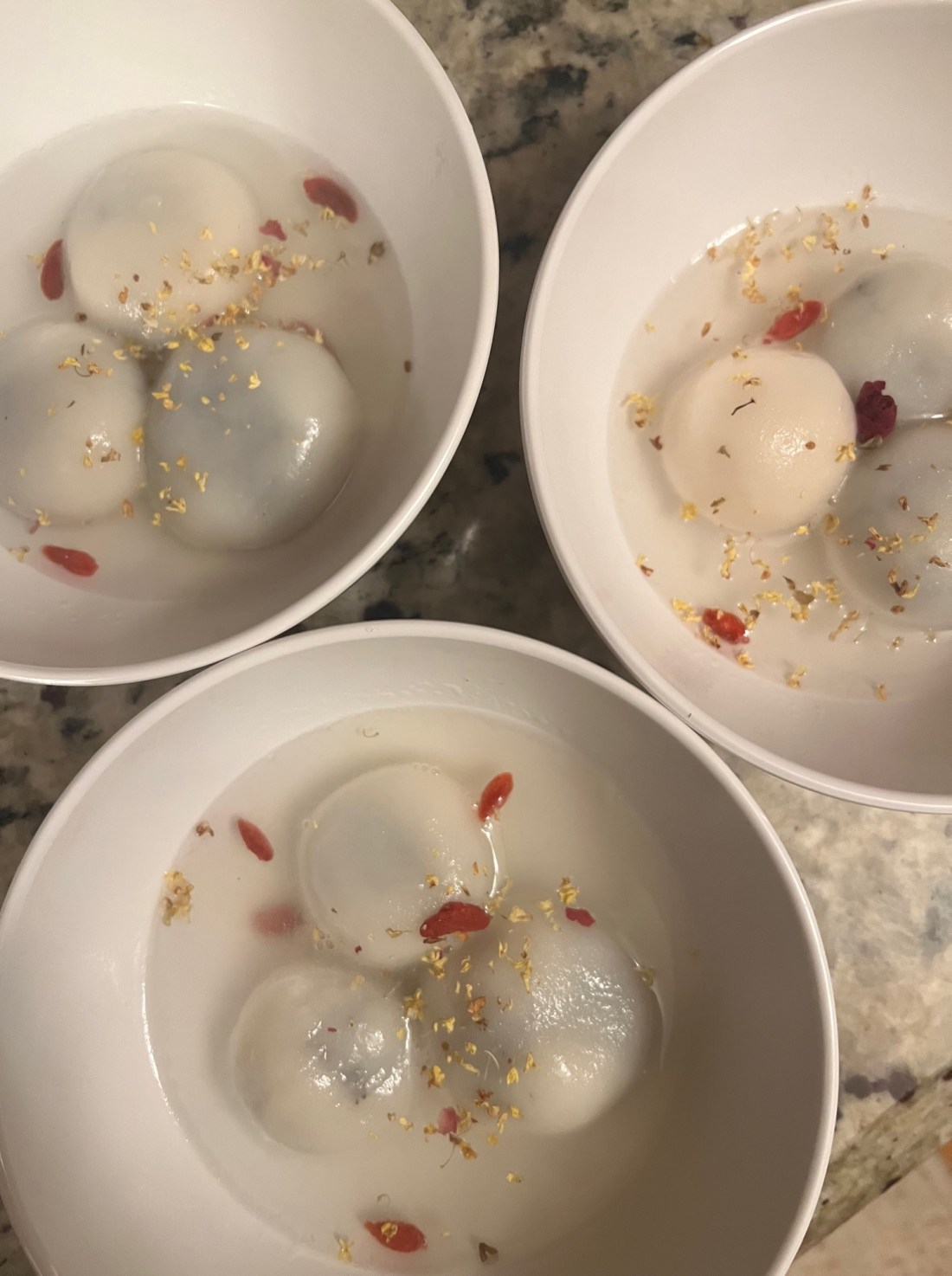 A childhood memory of mine is sitting in the family room with a bowl of 2 – 3 glutinous rice balls, sometimes with a peanut filling, sometimes with black sesame, prepared by mom. As a child, my reference for it was that it was a dessert we ate that had something to do with the moon. Fast forward to 2020, and tang yuan ended up being something I desperately sought out that year for a sense of stability and home. For many of my friends, the desire for the food we grew up with was extra strong during the time when Covid was new and we weren’t sure how long we would stay locked in our apartments with rolls of toilet paper and instant mix for Dalgona coffee.